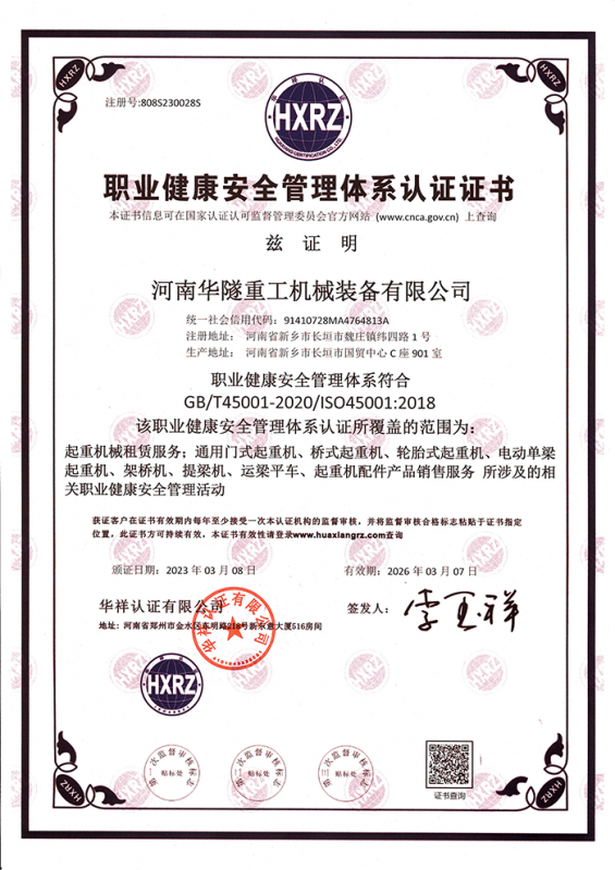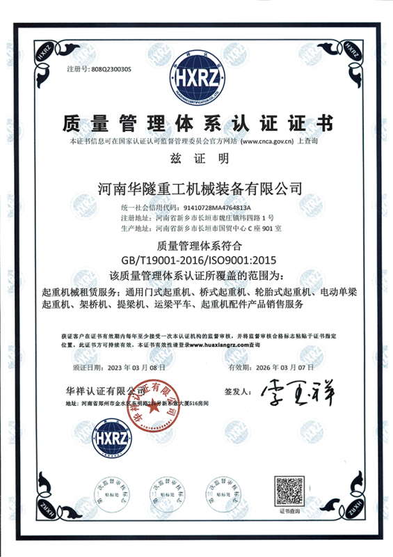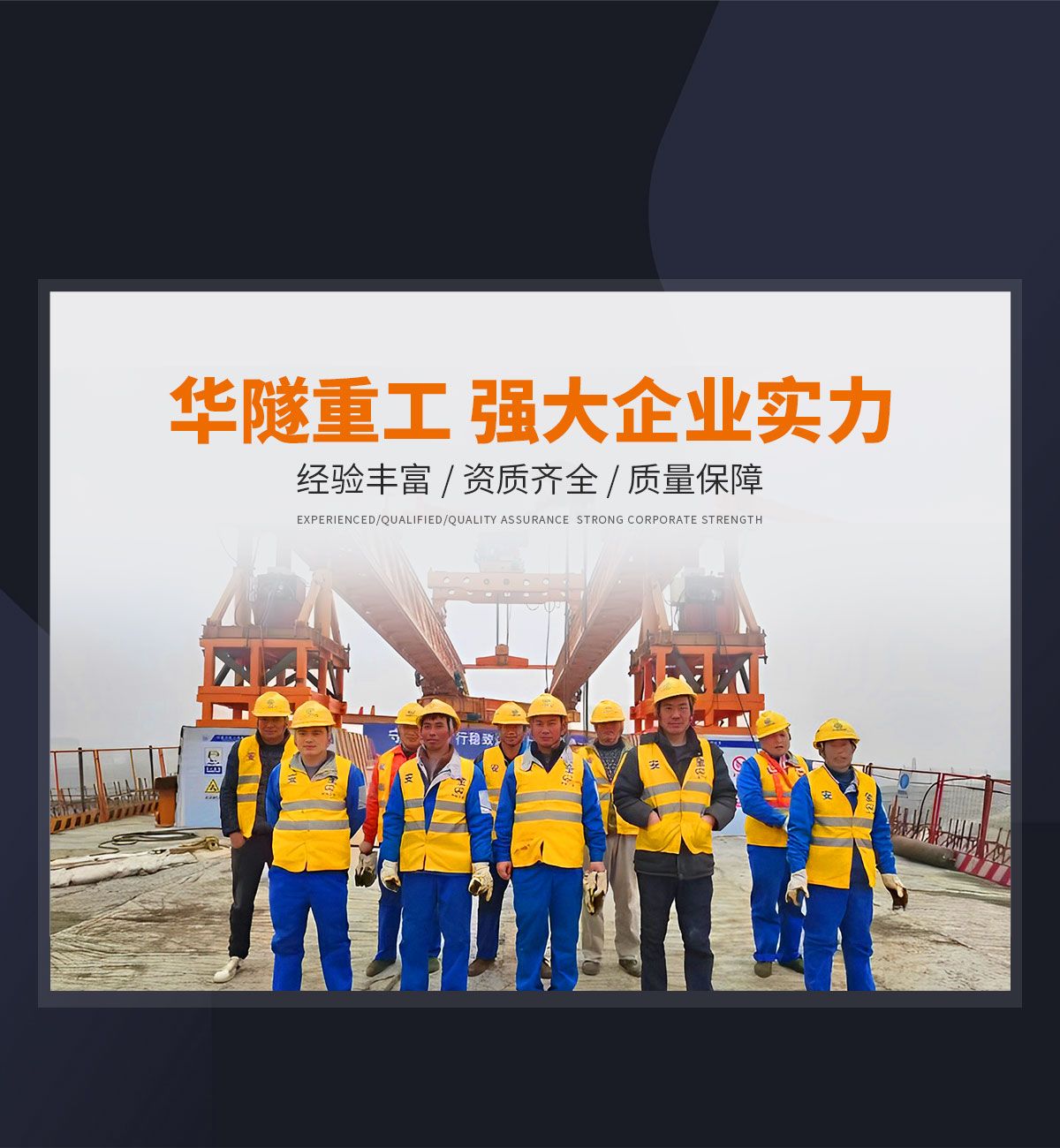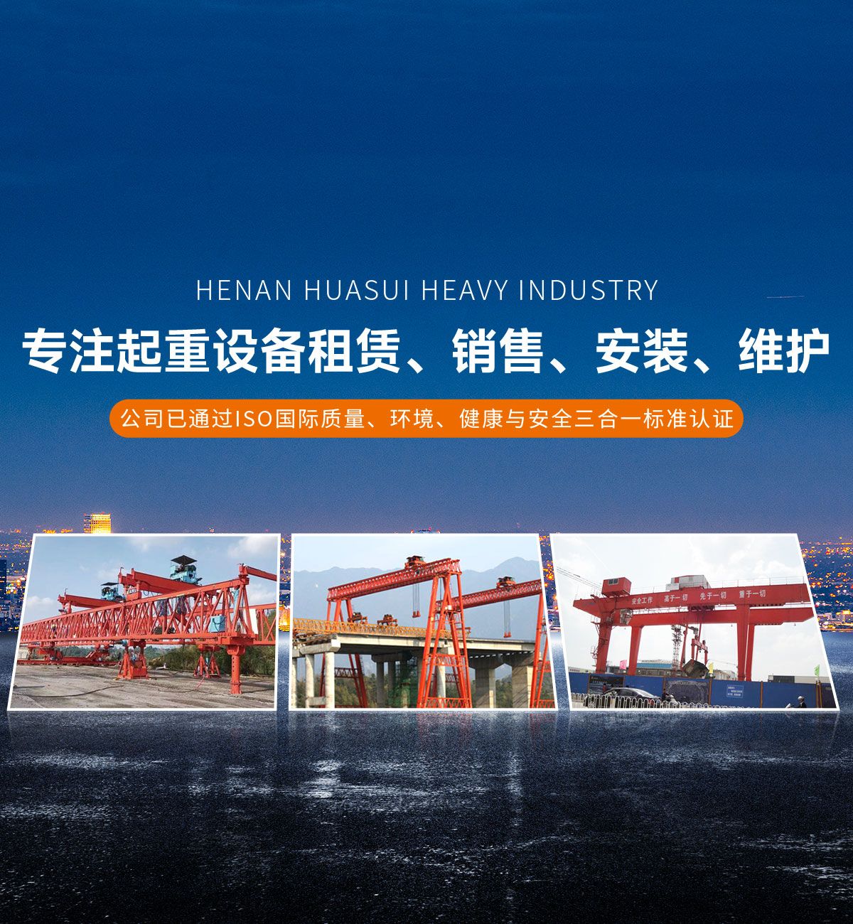 河南華隧重工機(jī)械裝備有限公司主要從事通用門式起重機(jī)、橋式起重機(jī)、電動(dòng)單梁起重機(jī),輪胎式起重機(jī)、架橋機(jī)、提梁機(jī)、遠(yuǎn)梁平車、鋼絲繩電動(dòng)萌蘆、卷揚(yáng)機(jī)、起重配件制造、銷售:起重機(jī)械租賃、安裝和維修,起重設(shè)備園收,機(jī)械設(shè)備維修,鋼結(jié)構(gòu)工程承包,橋梁工程及技術(shù)咨淘服務(wù),銷售五金制品、機(jī)電設(shè)備:建設(shè)工程監(jiān)理,建設(shè)工程設(shè)計(jì),各類工程建設(shè)活動(dòng),建筑勞務(wù)分包,建筑物折除作業(yè),施工作業(yè),工程管理服務(wù),土石方工程施工,裝如發(fā)運(yùn)?! 」疽淹ㄟ^IS0國際質(zhì)量、環(huán)境、健康與安全三合一標(biāo)準(zhǔn)認(rèn)證,特種設(shè)備制造許可證和特種設(shè)備安裝改造維修許可證。擁有完熟的質(zhì)量管理體系。嚴(yán)格的管理制度,強(qiáng)大的生產(chǎn)能力和先進(jìn)的檢測手段,在保證產(chǎn)品質(zhì)量的同時(shí),也具備了極強(qiáng)的市場競爭力?! 」緢?jiān)持科技創(chuàng)新為理念,產(chǎn)品質(zhì)量為核心,注重信譽(yù),建立了減信可靠、快捷、思速。便利周到的售后服務(wù)網(wǎng)絡(luò)。  我們擁有的技術(shù)專家和技術(shù)服務(wù)隊(duì)伍為客戶提供充善的售前技術(shù)支持和全天候的售后服務(wù)體系,讓您無后顧之憂,享受一站式的超值服務(wù)?!  叭A隧重工,伴您成功“是華隧重工永遠(yuǎn)的宗指,真被的希望與各界朋友攜手并進(jìn)。共創(chuàng)輝準(zhǔn)!